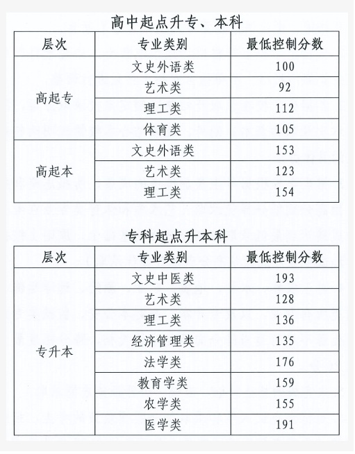 2025年北京市成人高校招生錄取最低控制分?jǐn)?shù)線