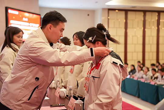 儀式現(xiàn)場,西安科技大學高新學院黨委工作部部長獨文菁宣讀宣讀《關(guān)于西安科技大學高新學院第十一周“青馬工程培訓班暨第五期教師團干部培訓班學員名單的決定”》,她進一步強調(diào)了“理論武裝+實踐鍛煉”的雙重培養(yǎng)目標,展現(xiàn)了西安科技大學高新學院思政教育工作從“單向灌輸”向“多維互動”的轉(zhuǎn)變。
