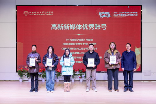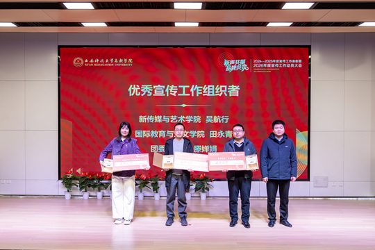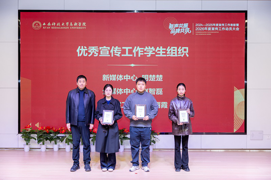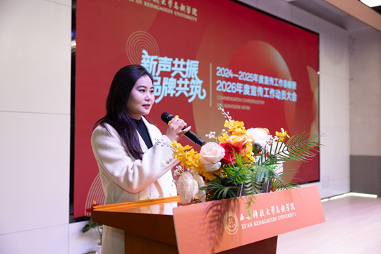 2024—2025年度宣傳工作表彰暨2026年度工作動(dòng)員大會(huì)的召開(kāi),不僅總結(jié)了過(guò)往成績(jī)、表彰了先進(jìn)典型,更凝聚了全院上下共同推進(jìn)宣傳工作的強(qiáng)大合力,為學(xué)院2026年度品牌宣傳建設(shè)工作的開(kāi)展指明了方向。未來(lái),西安科技大學(xué)高新學(xué)院將繼續(xù)秉持“新聲共振 品牌共筑”的理念,創(chuàng)新傳播方式、提升宣傳質(zhì)效,持續(xù)講好高新故事、擦亮學(xué)院品牌,為學(xué)院各項(xiàng)事業(yè)高質(zhì)量發(fā)展提供強(qiáng)有力的思想保證和輿論支持。