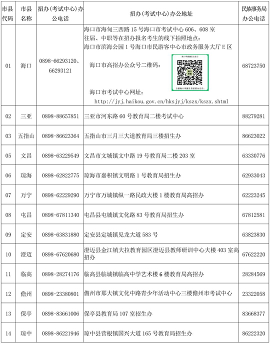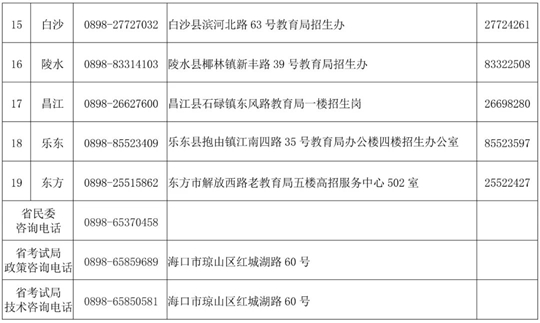 2026年海南省普通高考報名期間各市縣咨詢電話和地址