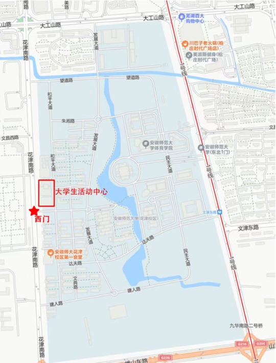 從安徽師范大學(xué)花津校區(qū)西門(花津南路)進(jìn)入到達(dá)考試區(qū)域最為便捷,從其他校門前往考試區(qū)域,請(qǐng)務(wù)必預(yù)留充足的交通時(shí)間。