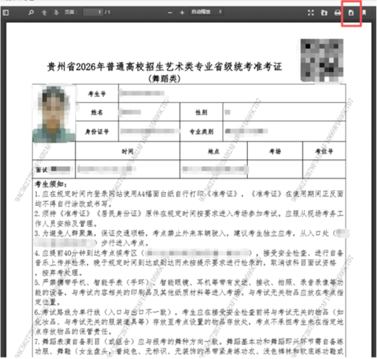 | 貴州省2026年普通高等學(xué)校招生藝術(shù)類專業(yè)省級統(tǒng)考準(zhǔn)考證打印操作步驟 |