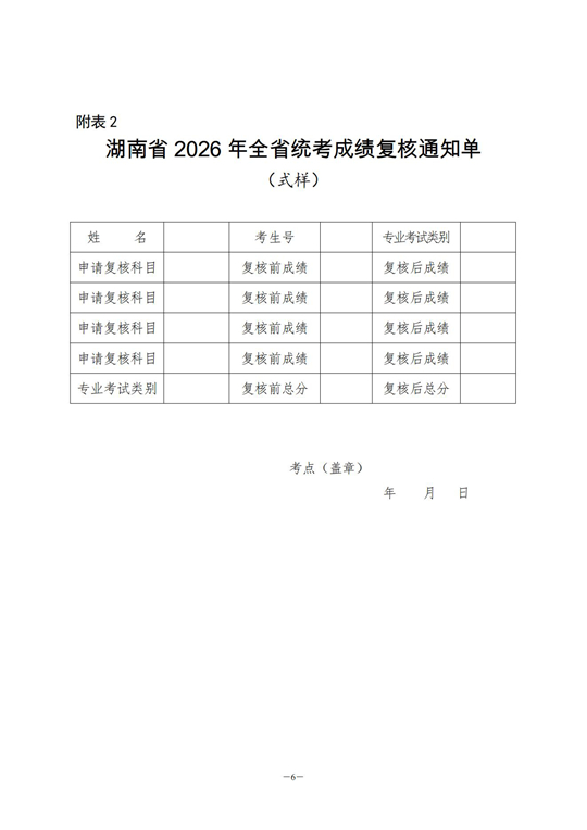 2.湖南省2026年全省統(tǒng)考成績復(fù)核通知單(式樣)