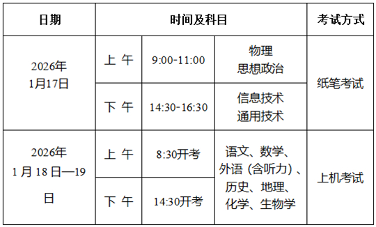 我市2025-2026學(xué)年度第一學(xué)期普通高中學(xué)業(yè)水平合格性考試將于2026年1月17日-19日進行。現(xiàn)將考試及報名有關(guān)安排公告如下: