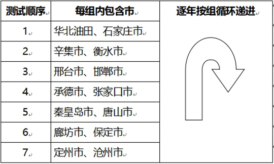 4.測試順序:采取循環(huán)遞進(jìn)方式安排各市考生測試順序。具體辦法為:每2市為一組,按往年測試順序?qū)?4個市分為7個組,逐年按組循環(huán)遞進(jìn)。2026年測試順序依次為: