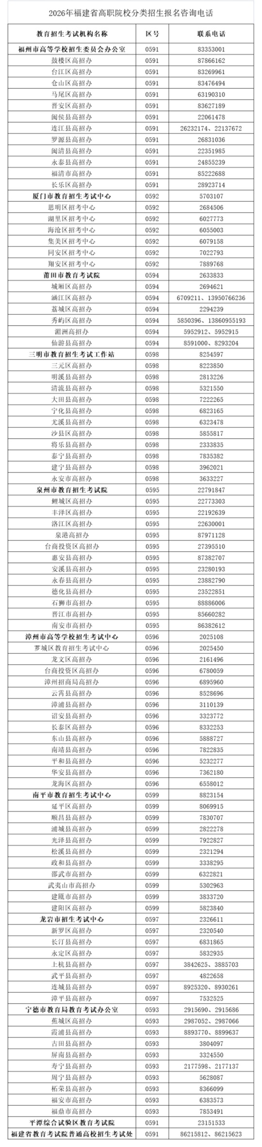 根據(jù)《福建省高等學校招生委員會 福建省教育廳關(guān)于做好2026年普通高等學校招生考試報名工作的通知》(閩招委〔2025〕9號)和《福建省教育廳關(guān)于印發(fā)<福建省高職院校分類考試招生改革實施辦法>的通知》(閩教學〔2019〕35號)等文件精神,為做好2026年我省高職院校分類考試招生(以下簡稱“高職分類招考”)報名工作,現(xiàn)將有關(guān)事項通知如下。