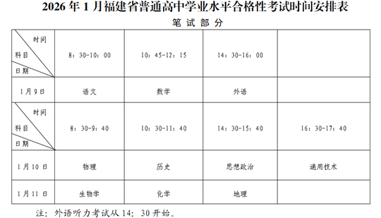 | 福建:關(guān)于2026年1月普通高中學(xué)業(yè)水平合格性考試報名工作的通告 |