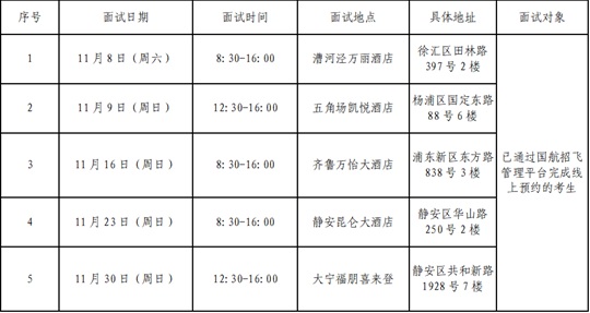 (二)預(yù)選初檢:登錄“國(guó)航招飛管理平臺(tái)”填寫信息、預(yù)約場(chǎng)次,已預(yù)約考生嚴(yán)格按照預(yù)約時(shí)間參加國(guó)航招飛辦公室組織的現(xiàn)場(chǎng)初檢面試(含飛行職業(yè)能力傾向測(cè)試、英語(yǔ)測(cè)試、面試等);
