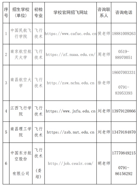 為做好中國民用航空飛行學(xué)院、南京航空航天大學(xué)、南昌航空大學(xué)、江西飛行學(xué)院、南昌理工學(xué)院、東航江西分公司等單位招收民航飛行技術(shù)專業(yè)考生初檢選拔工作,現(xiàn)將有關(guān)事項(xiàng)通知如下。