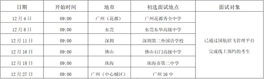。ǘ╊A(yù)選初檢:登錄“國(guó)航招飛管理平臺(tái)”填寫(xiě)信息、預(yù)約場(chǎng)次,已預(yù)約考生嚴(yán)格按照預(yù)約時(shí)間參加國(guó)航招飛辦公室組織的現(xiàn)場(chǎng)初檢面試(含飛行職業(yè)能力傾向測(cè)試、英語(yǔ)測(cè)試、面試等);