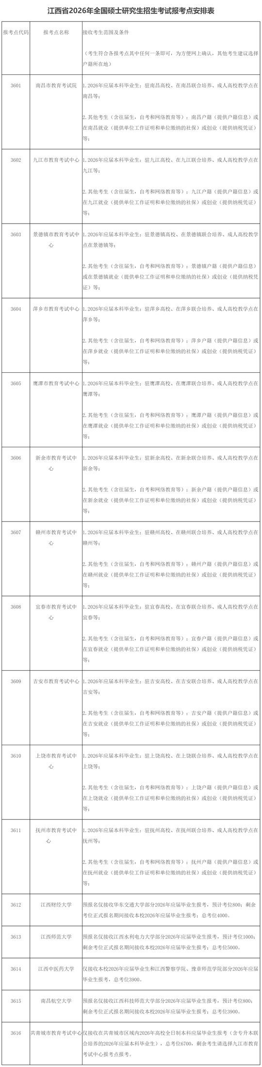 附件:江西省2026年全國碩士研究生招生考試報(bào)考點(diǎn)安排表