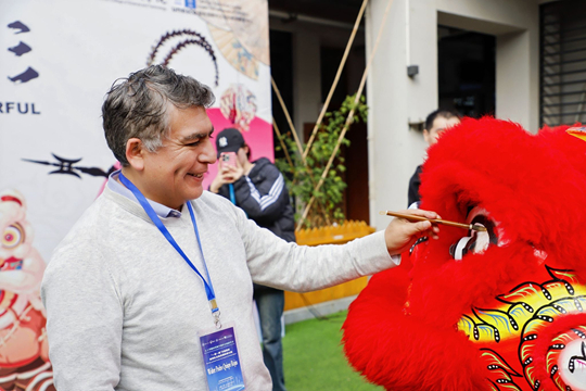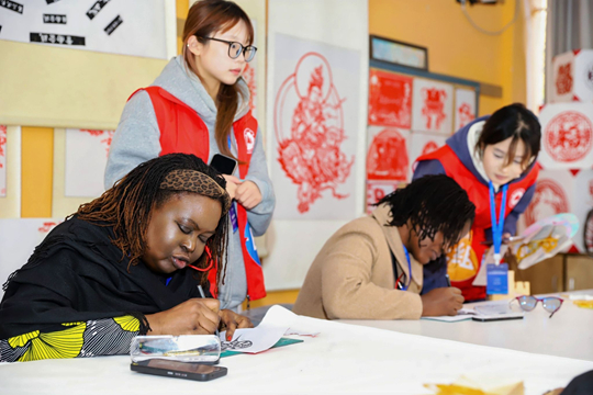 在校園參訪中,嘉賓們走進泰山科技學(xué)院新教育實驗展館,直觀感受“生活即教育”的實踐理念;通過泰山巨幕影談電影放映、Disco House主題派對、岱廟參觀促進跨國互動;更親身參與南派醒獅、泰山碑刻拓印、刻紙等非遺體驗,沉浸式感受中華文化的獨特魅力。聯(lián)合國教科文組織教師教育中心的Jordan Naidoo由衷贊嘆:“這些藝術(shù)品,尤其是剪紙,圖像非常漂亮。學(xué)生們對自身文化的熱愛令人感動!