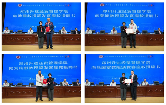 張欣向池建、姜波、劉純獻(xiàn)、徐國富頒發(fā)客座教授聘書