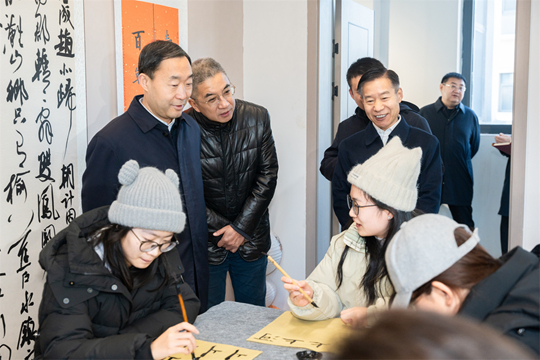 常書銘一行走訪了烏馬河非物質(zhì)文化遺產(chǎn)館各具特色的6個展廳,現(xiàn)場觀看了學(xué)生練習(xí)國家級非遺項目形意拳,對學(xué)校將發(fā)源于太谷的形意拳引進校園并作為全校學(xué)生必修課、傳承非遺文化的做法表示贊許。他強調(diào),非遺文化既是傳承中華優(yōu)秀傳統(tǒng)文化的重要載體,更是激活地方產(chǎn)業(yè)發(fā)展的寶貴資源,要持續(xù)深挖非遺文化蘊含的雙重價值,既要充分釋放非遺文化的育人潛力,將其融入人才培養(yǎng)全過程,以文化浸潤提升人才綜合素養(yǎng),也要強化其產(chǎn)業(yè)賦能作用,讓非遺中的創(chuàng)意理念、技藝精髓與地方特色產(chǎn)業(yè)深度融合,推動傳統(tǒng)文化在校園育人與地方振興的雙向互動中煥發(fā)新活力。