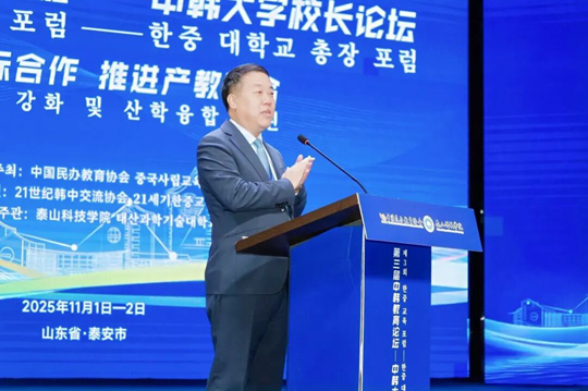 11月1日,在教育部的指導(dǎo)支持下,由中國民辦教育協(xié)會主辦、21世紀(jì)韓中交流協(xié)會協(xié)辦、泰山科技學(xué)院承辦的第三屆中韓教育論壇——中韓大學(xué)校長論壇在山東泰安隆重開幕。