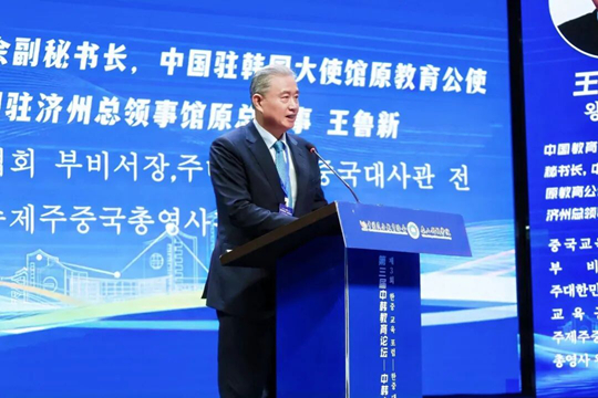 中國教育國際交流協(xié)會副秘書長、中國駐韓國大使館原教育公使銜參贊、中國駐濟(jì)州總領(lǐng)事館原總領(lǐng)事王魯新,山東省委教育工委委員、省教育廳黨組成員、副廳長張志剛等嘉賓一致肯定論壇對促進(jìn)中韓教育發(fā)展的積極意義,并表示將持續(xù)支持雙方拓展合作領(lǐng)域、提升合作水平。