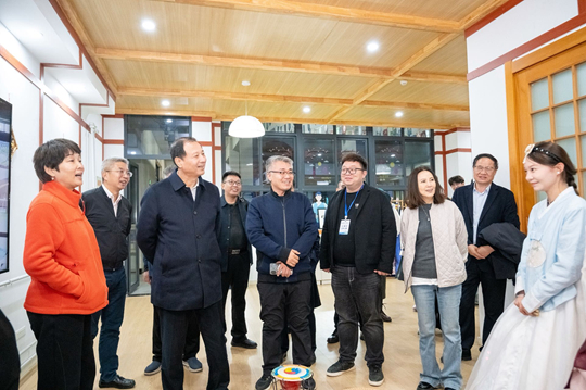 走進(jìn)中韓學(xué)院,孫堯關(guān)切詢問(wèn)學(xué)生發(fā)展近況,并著重剖析了國(guó)際化辦學(xué)中的育人關(guān)鍵。他強(qiáng)調(diào),要注重培養(yǎng)學(xué)生的“歷史思維”,幫助他們建立正確的心理認(rèn)知和堅(jiān)固的心理防線。對(duì)于學(xué)校在每個(gè)建筑設(shè)置韓語(yǔ)標(biāo)識(shí)的做法,他連連稱許,認(rèn)為這為國(guó)際化辦學(xué)創(chuàng)造了良好的語(yǔ)言和環(huán)境浸潤(rùn)。