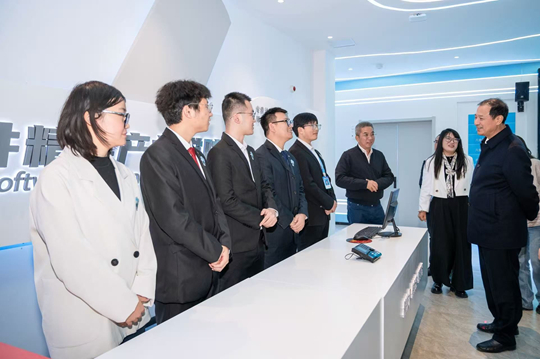 在雙體軟件精英產(chǎn)業(yè)學(xué)院,孫堯?qū)Α凹夹g(shù)實(shí)戰(zhàn)+職場(chǎng)關(guān)鍵能力”的雙體系培養(yǎng)模式表示了充分肯定。在聽完詳細(xì)介紹后,他即興用“大學(xué)生是一張可畫精彩圖畫的白紙”這一生動(dòng)比喻,精準(zhǔn)地道出了學(xué)生們巨大的發(fā)展?jié)撃芘c泰山科技學(xué)院在個(gè)性化培養(yǎng)上的努力,并鼓勵(lì)學(xué)生們要緊盯技術(shù)前沿,努力提升實(shí)踐能力。