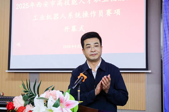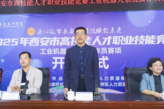 西安鐵道技師學(xué)院黨委書記、校長(zhǎng)左永煥致開幕詞,代表學(xué)校對(duì)各位領(lǐng)導(dǎo)的支持和信任表示衷心感謝,向大賽組委會(huì)成員、各參賽隊(duì)伍及裁判專家們致以熱烈歡迎。他表示,工業(yè)機(jī)器人作為“新質(zhì)生產(chǎn)力”的核心載體,其技術(shù)應(yīng)用與人才儲(chǔ)備已成為衡量區(qū)域競(jìng)爭(zhēng)力的關(guān)鍵指標(biāo)。本次競(jìng)賽以“匠心筑夢(mèng)長(zhǎng)安,精技賦能未來”為主題,聚焦工業(yè)機(jī)器人系統(tǒng)操作員賽項(xiàng),精準(zhǔn)對(duì)接《中國(guó)制造2025》戰(zhàn)略需求,既是落實(shí)“深化產(chǎn)教融合、強(qiáng)化技能報(bào)國(guó)”的實(shí)踐行動(dòng),也是對(duì)學(xué)校辦學(xué)辦賽實(shí)力的肯定與檢閱,同時(shí)表示將全力保障賽事,期盼深化合作共譜技能成才新篇章。