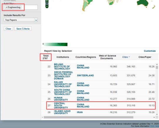 9月11日,最新ESI數(shù)據(jù)更新顯示中南大學(xué)工程學(xué)首次進(jìn)入ESI全球前萬分之一。