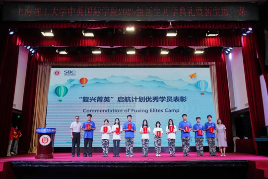 典禮在為期兩周的新生“復(fù)興菁英”啟航計劃回顧短片中拉開帷幕。作為學(xué)院新生適應(yīng)性教育的特色品牌活動,啟航計劃旨在將入學(xué)認(rèn)知教育有機的融入軍訓(xùn)日程之中,通過開展體能訓(xùn)練、專業(yè)體驗課、趣味運動會等一系列特色活動,引導(dǎo)學(xué)生迅速融入國際化校園的同時,選拔一批表現(xiàn)優(yōu)異的學(xué)員。隨后,李妍與張崢為“復(fù)興菁英”啟航計劃優(yōu)秀學(xué)員頒發(fā)榮譽證書,對他們?nèi)〉玫某煽儽硎咀YR,并鼓勵大家以此為起點,在未來逐夢的路上繼續(xù)綻放光彩。