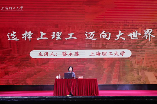 在一部上海理工大學(xué)英文宣傳片播放完畢后,副校長蔡永蓮以“令你印象深刻的上理工”為引,通過輕松親切的互動問答,正式拉開了“新生第一課”的序幕。她表示,“復(fù)興菁英”啟航計劃雖充滿挑戰(zhàn),但一路走來,見證了新生的成長與蛻變,內(nèi)心十分驕傲。隨后,她圍繞“你所來到的上理工與中英國際學(xué)院”“如何度過大學(xué)四年”以及“未來展望”等多個主題,結(jié)合學(xué)校發(fā)展歷程與人才培養(yǎng)理念,為新生生動講述了學(xué)校和學(xué)院深厚的文化底蘊、國際化辦學(xué)特色以及近年來在科教融合、創(chuàng)新實踐方面取得的碩果。她鼓勵同學(xué)們盡快適應(yīng)大學(xué)生活,科學(xué)規(guī)劃學(xué)業(yè),積極參與實踐。最后,蔡永蓮寄語全體新生珍惜青春時光,樹立遠(yuǎn)大理想,以奮進(jìn)姿態(tài)書寫無悔青春,努力成長為擔(dān)當(dāng)民族復(fù)興大任的時代新人,成為真正的追夢者與圓夢人。